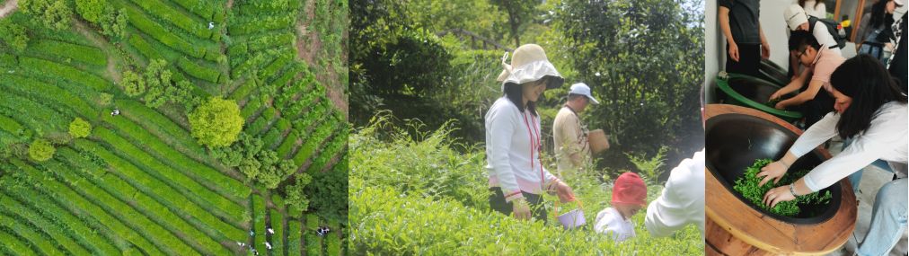 滿山的茶樹郁郁蔥蔥,空氣中飄著淡淡茶香,鄉村書記講解了茶葉采摘的標準后,大家就背上背簍,拎著鋤頭,開始了采茶、挖野菜等鄉間體驗活動,大人、小孩在一排排茶樹間穿梭,積極體驗采茶的樂趣,采來的茶葉送到制茶工坊進行現場手工炒制,感受勞作收獲的喜悅。