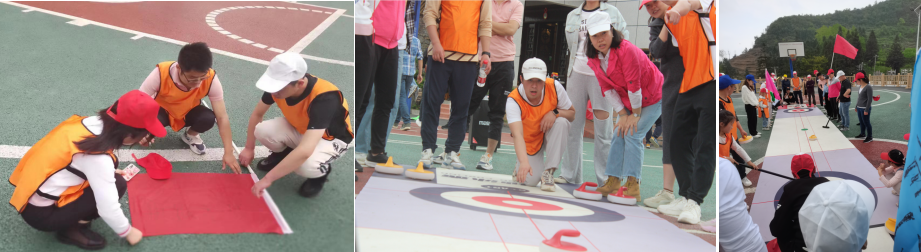 活動現場,在領隊老師的帶領下,大家積極參與分組、選隊長、取隊名、繪隊旗、呼口號、選隊歌,擺隊形等環節。隨后,四支隊伍進行了開營破冰、投冰壺等趣味運動,歡樂有趣的游戲運動增強了團隊凝聚力,也為一天的精彩活動拉開了序幕。